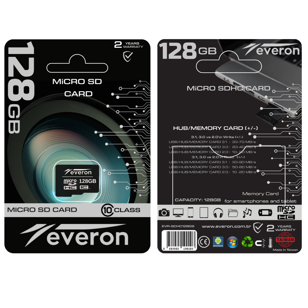 Everon 128GB Micro SD hafıza kartı, yüksek hızda veri aktarımı ve geniş depolama kapasitesi sunarak, 4K video kaydı, yüksek çözünürlüklü fotoğraflar ve büyük dosya saklama ihtiyaçları için ideal bir çözümdür. Akıllı telefonlar, tabletler, aksiyon kameraları, drone’lar ve oyun konsolları gibi birçok cihazda kullanılabilir.