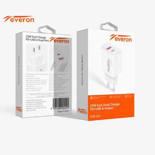 Everon EVR023 25W Çift Girişli (USB-C & USB-A) Hızlı Şarj Cihazı