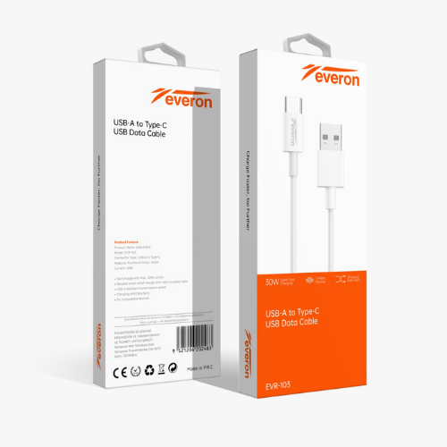 Everon EVR-103, USB-A girişine sahip adaptörler, bilgisayarlar ve diğer cihazlarla Type-C girişine sahip telefon, tablet ve diğer aygıtları hızlı ve güvenli şekilde şarj etmek ve veri transferi yapmak için tasarlanmıştır.